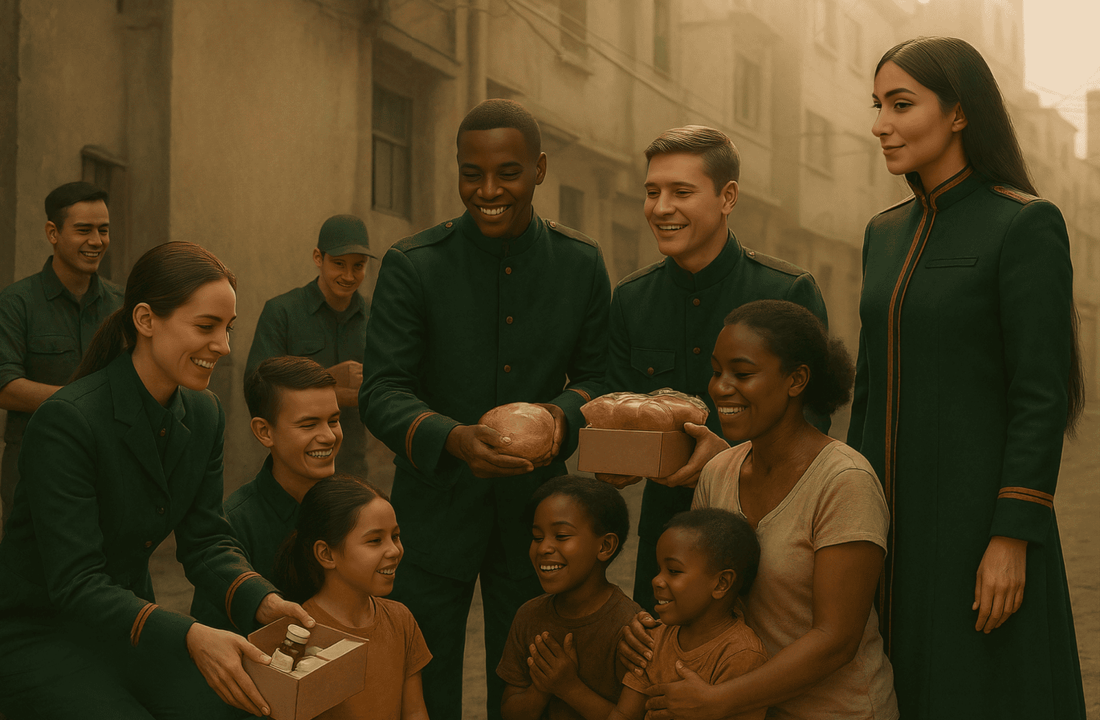 El Ejército de Justicia extiende su labor más allá de la defensa y la disciplina, actuando como brazo solidario del Gobierno Profético Luz y Justicia. Las brigadas de servicio comunitario son equipos especializados en la asistencia directa a la población, brindando ayuda en emergencias, apoyando a familias necesitadas y liderando campañas de salud y educación.